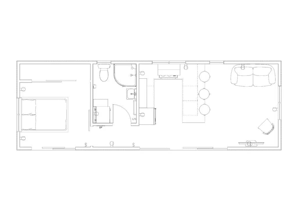 This popular large 1-bedroom design, ideal for rental or holiday homes. It features under-bench storage for added convenience and is suitable for long-term accommodation, combing comfort and practicality in a compact space.