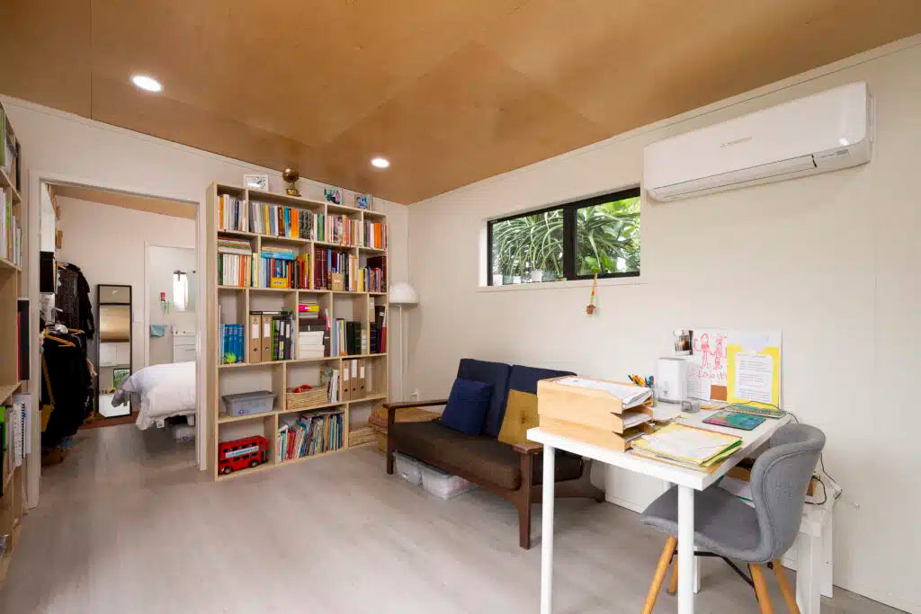 Choose between a self-contained one-bedroom studio or a versatile 2-bedroom sleepout designed for kids, guests, a home studio, or a small granny flat. It offers more space within a compact form, fitting into most properties with ease. Easily lifted by Hiab truck for cost effective and convenient delivery. It features a kitchenette or laundry unit depending on your needs