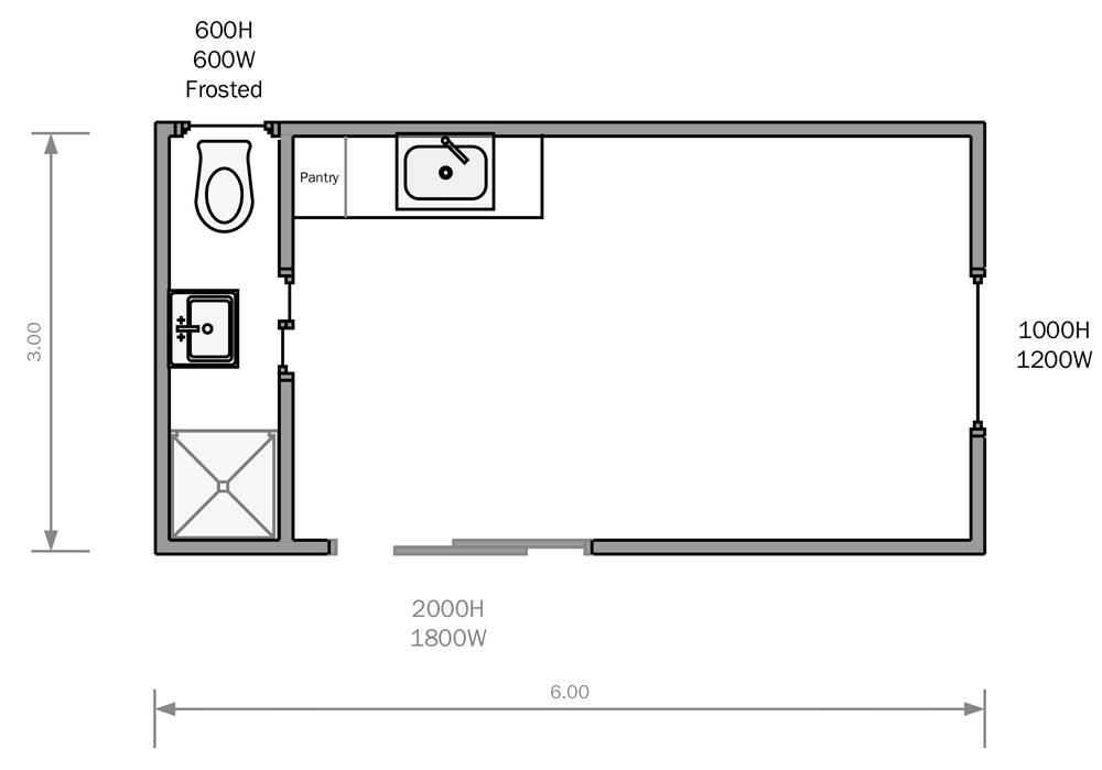 - Joinery: Aluminum Double Glazed 2 of 500×2000 1 of 600×400 Frosted