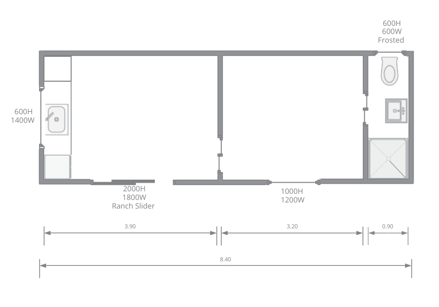 - Joinery: Aluminum Double Glazed 1 – 1000×1200 1 – 600×1400 1 – 600×600 Frosted