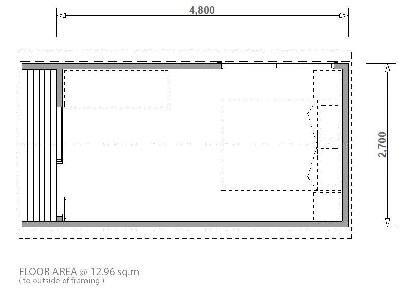 The room’s Internal dimensions of 4.6m x 2.5m provide enough space for comfortable living while maintaining a compact footprint.